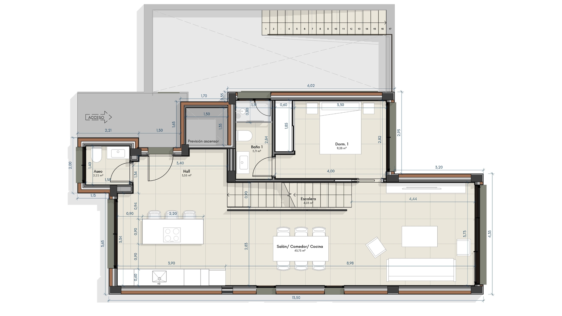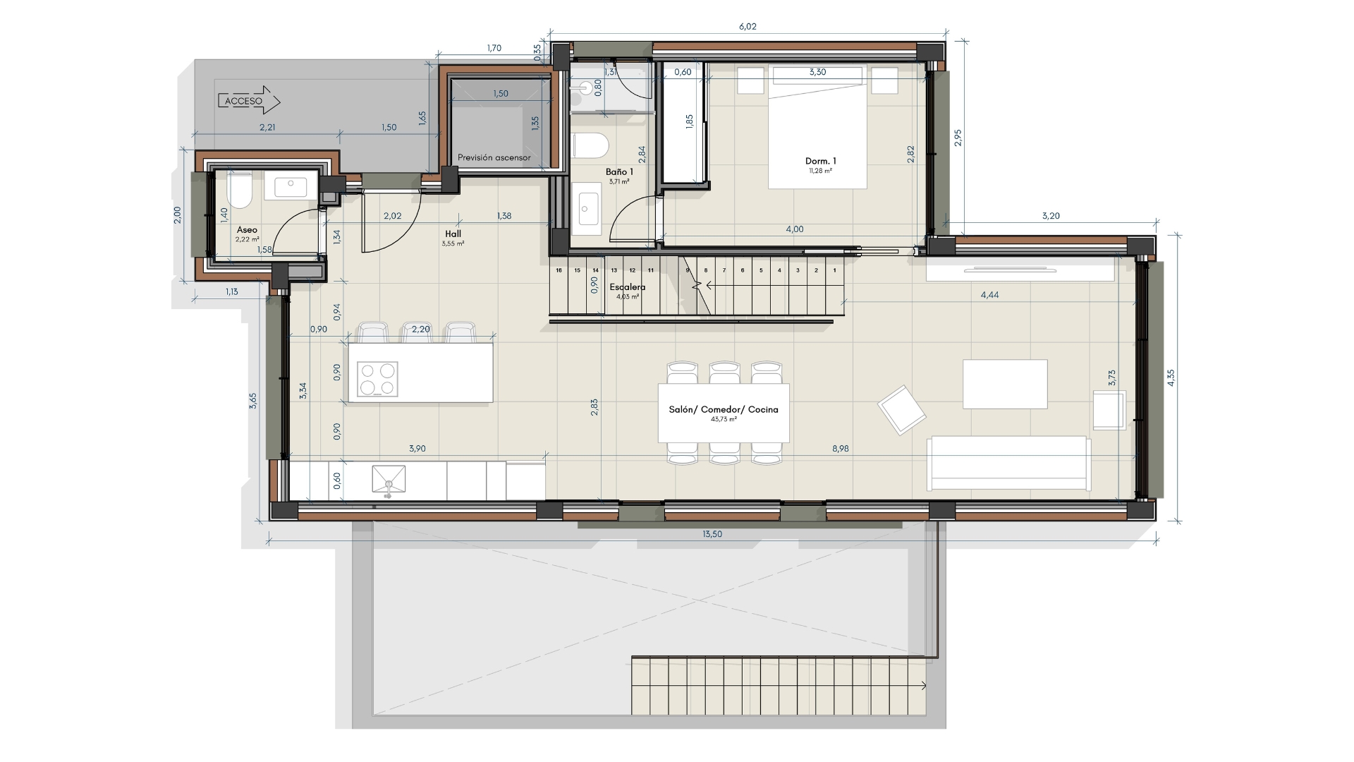 Todas las viviendas cuentan con hueco para la instalación de un futuro ascensor (no incluido).